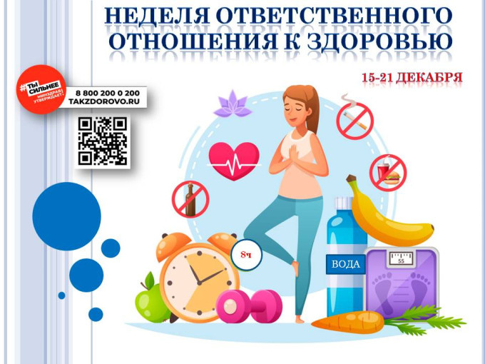 С 15 по 21 декабря 2025 года в России пройдет «Неделя ответственного отношения к здоровью».